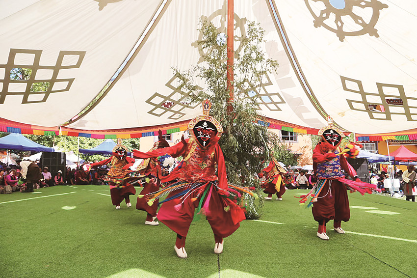 “咚咚咚、鏘鏘鏘”,隨著陣陣雄渾的藏戲鼓鈸聲,時而悠揚、時而高亢的藏戲唱腔以秀場為中心向四周擴散,跌宕起伏的劇情推進,演員們高亢的唱腔、流暢的對白、具有濃郁民族特色的舞蹈及美輪美奐的演員服飾無不牢牢鎖住觀眾眼球,他們時而傾聽微笑,時而鼓掌喝彩,時而用鏡頭記錄精彩瞬間……