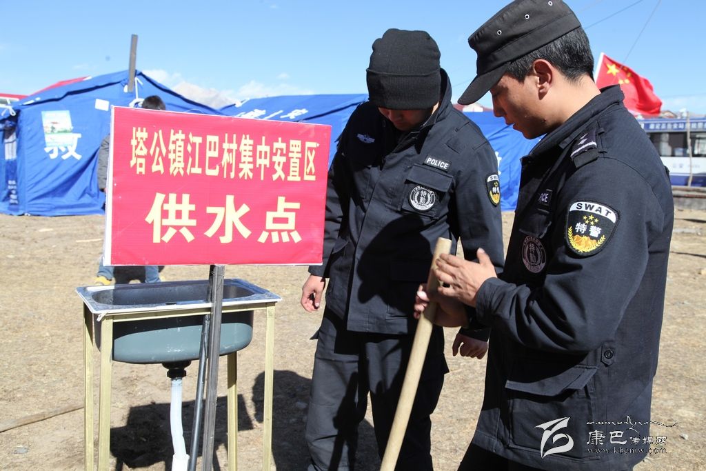 走進江巴牧民新村安置點我們看見幾位管道工人和特警正在忙碌著挖埋管道,管道的旁邊豎起了一個紅色的牌子,上面寫著塔公鎮(zhèn)江巴村集中安置區(qū)供水點,據(jù)挖埋管道的人員介紹,按照康定縣水務局的要求,安置區(qū)供水點經(jīng)過兩天的時間總共建成了兩處,康定縣水務局在災區(qū)明確方式,分類援助,主要從水源、管道、集中供水點和水質(zhì)保障四個環(huán)節(jié)解決供水問題。保證了大批災區(qū)群眾和救援人員的生活用水,有效預防了疫情的發(fā)生。