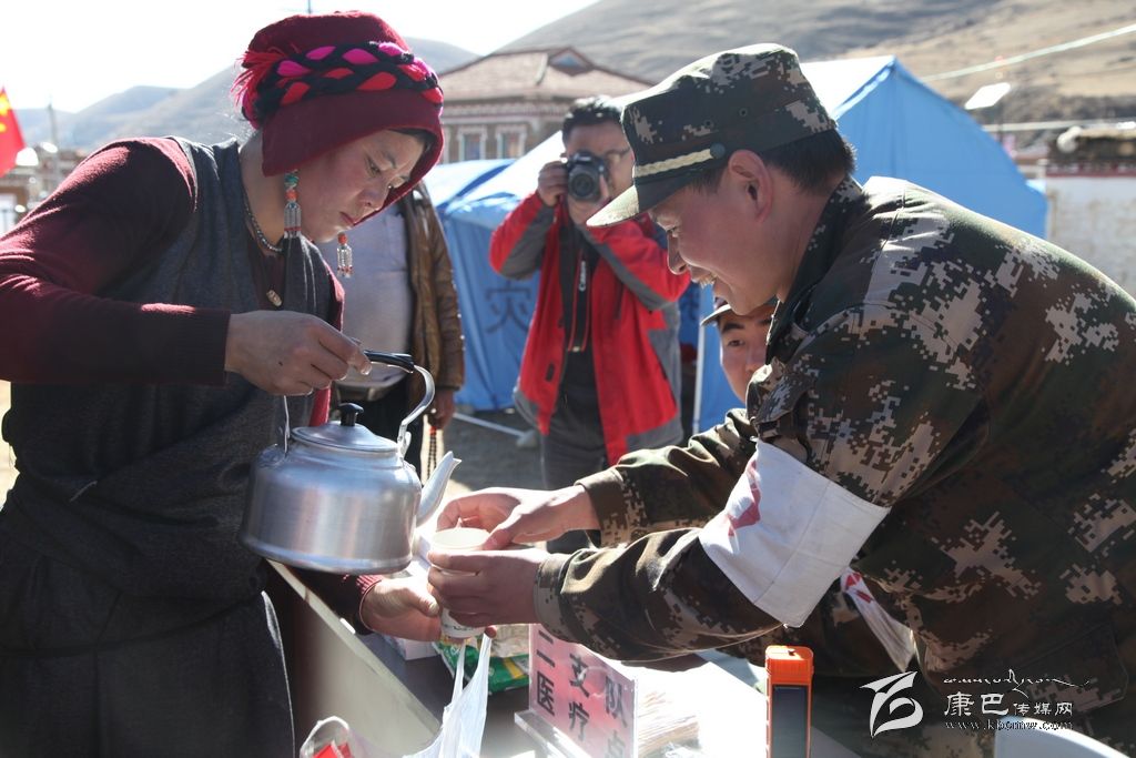 一位媒體同仁在接到她們送上的酥油茶時說:“這酥油茶特別香,熱乎乎的,真的很好喝,從嘴里暖到了心里。”四川部隊武警二支隊的軍醫(yī)陳海波告訴記者:“今天早上就看見她們在這里送酥油茶,她們一直穿梭在人群里,我們也拿到了她們送上的酥油茶。心里特別的感動,有這樣的農(nóng)牧民,我們?yōu)榱怂麄冊倏嘣倮垡灿X得值得。”