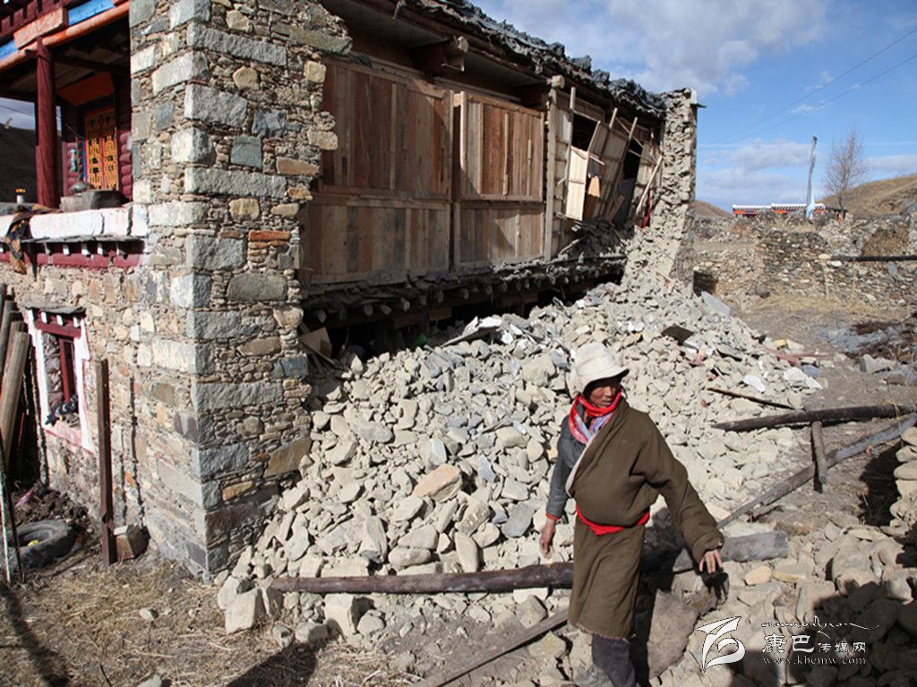 該村不少舊式藏居已經(jīng)徹底倒塌,瓦礫遍地。正在幫助村民搭建帳篷的中古村包村干部劉怡說,全村共189戶村民,125戶有房,受災(zāi)110棟房,其中五組受災(zāi)最嚴(yán)重,31戶房屋倒塌。這個(gè)村當(dāng)年沒有被納入牧民定居建設(shè)。