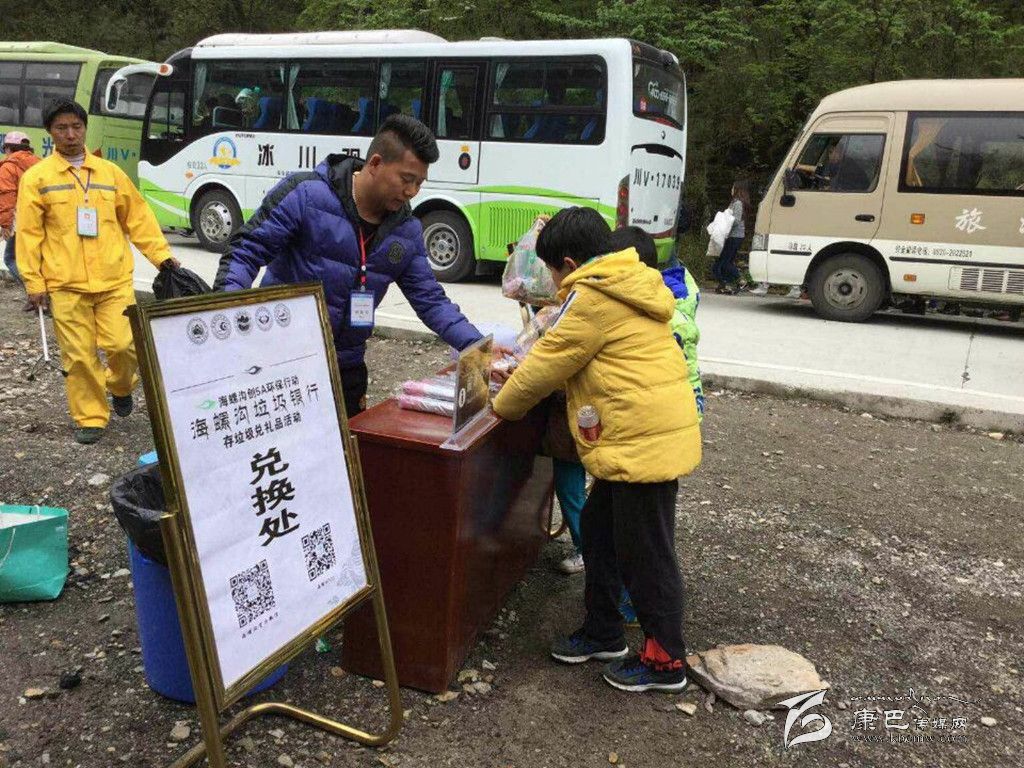 “亂丟垃圾等不文明現(xiàn)象,工作人員看見了會及時勸阻,然后會幫他們撿起來,再扔到垃圾桶里。”景區(qū)營銷處負責人丁海明告訴記者,為杜絕游客隨意丟棄垃圾的行為,海螺溝景區(qū)建立“垃圾銀行”,游客回收垃圾,可以兌換精美禮品。