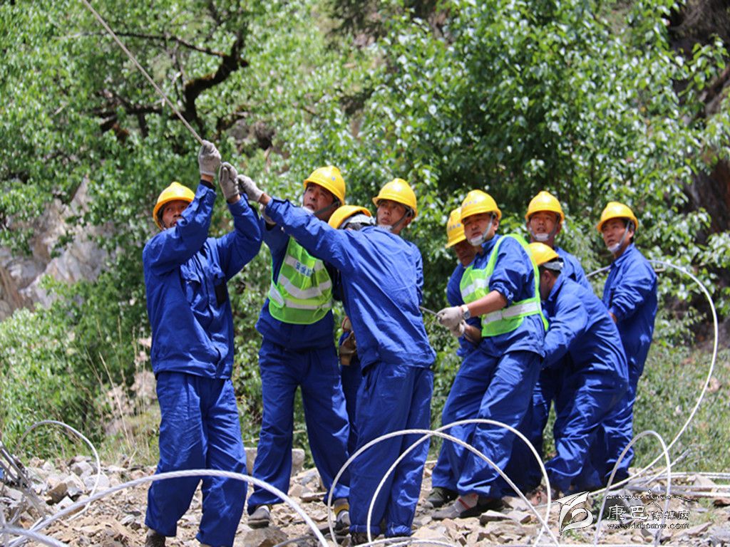 “辛苦”二字同樣印在工程管理者的工作中。手握對(duì)講機(jī)、身穿工裝的工程項(xiàng)目負(fù)責(zé)人龍森,此刻正頂著烈日在工地對(duì)一位工人叮囑施工事項(xiàng)。龍森是甘孜電力建設(shè)有限公司的工程技術(shù)人員,他對(duì)工程管理非常嚴(yán)格,如果工程進(jìn)度稍慢點(diǎn),他就會(huì)焦急萬(wàn)分??擅棵靠匆姽と藗冺斨胰?、冒著風(fēng)雨加班加點(diǎn)趕工程進(jìn)度時(shí),龍森的心里也特別不是滋味。對(duì)這項(xiàng)工程的不易龍森深有體會(huì)。架桿初期,有些路段山坡土質(zhì)松軟,一遇到下雨就容易滑坡塌方,為了不影響工程進(jìn)度,龍森和工友們常常要一邊做“修路工”的工作一邊做“架桿工”的工作。龍森說(shuō):“最苦的是,這里有些路段車輛根本無(wú)法進(jìn)入,一根電桿重1.2噸,要靠十多名工人用繩索和木頭抬進(jìn)工地。德差鄉(xiāng)距離縣上有170多公里,單程就要4小時(shí),工程緊的時(shí)候一周要往返縣上兩三趟。還記得有一次車胎在海拔近5000米的呷布科山上爆了,山上手機(jī)沒有信號(hào),得不到救援,餓了我們就在山上吃點(diǎn)自帶的干糧,等了近半天才等到一位騎摩托車的老鄉(xiāng)路過,回到休息地的時(shí)候已經(jīng)是半夜兩點(diǎn)多了。”說(shuō)到這里,龍森無(wú)奈地?fù)u了搖頭。世上無(wú)難事,只怕有心人。龍森說(shuō),這段路線的電桿已經(jīng)全部立起來(lái)了,現(xiàn)在只剩下架線的工作。一定要搶在月底之前為這兩個(gè)村通上電。