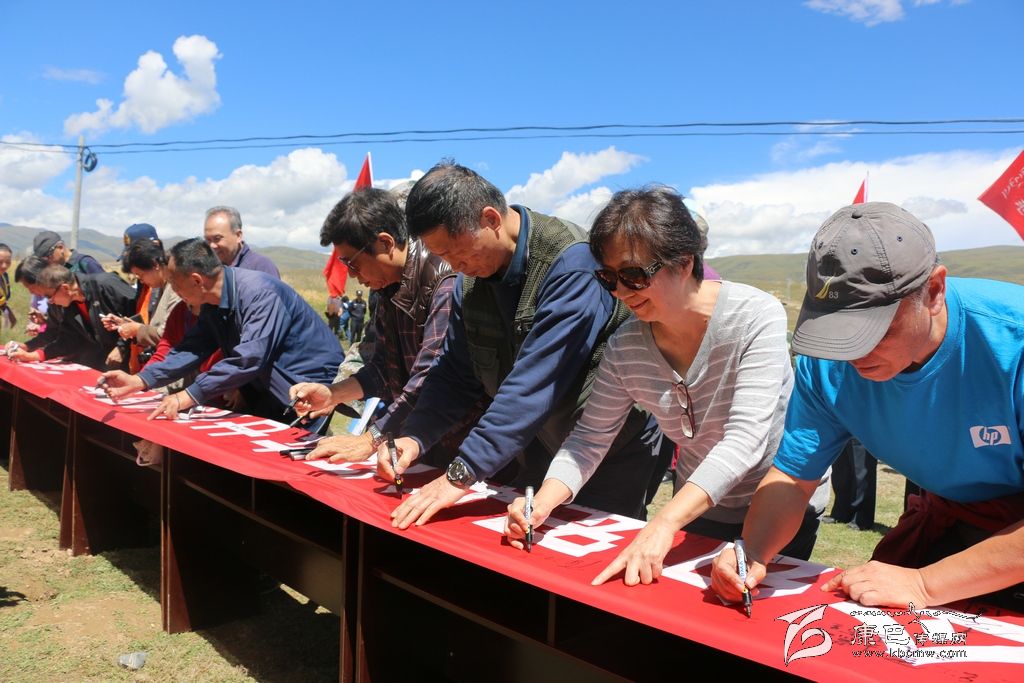 當(dāng)天中午,“甘孜州紀(jì)念紅軍長(zhǎng)征在甘孜80周年暨紅色文化旅游宣傳促銷系列活動(dòng)之紅軍后代重走長(zhǎng)征路活動(dòng)”在該縣十八軍窯洞群遺址隆重舉行,康北民族高級(jí)中學(xué)、斯俄鄉(xiāng)干部、武警官兵、寺廟僧人600人參加了此次活動(dòng)?;顒?dòng)中,紅軍后代們認(rèn)真聆聽(tīng)了講解員介紹十八軍窯洞群鮮為人知、催人奮進(jìn)的歷史故事。他們敬獻(xiàn)花圈、整理挽聯(lián),向在高原上艱苦奮斗、舍身赴義的革命先輩們默哀。隨后,參與活動(dòng)人員在“藏漢一家親”和“紀(jì)念紅軍長(zhǎng)征在甘孜80周年”的巨型橫幅上簽名,并與紅軍后代徒步一公里,其間由學(xué)生、群眾代表、志愿者和紅軍后代互動(dòng)拉歌 。大家用自己的歌聲、自己的行動(dòng),回顧那段歷史,緬懷革命先輩的豐功偉績(jī),感受紅軍先烈們艱苦的生活環(huán)境和艱險(xiǎn)的戰(zhàn)斗歷程。