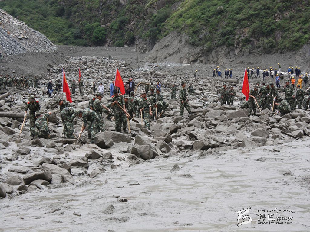 武警支隊官兵參加康定“7.23”泥石流搶險救災。