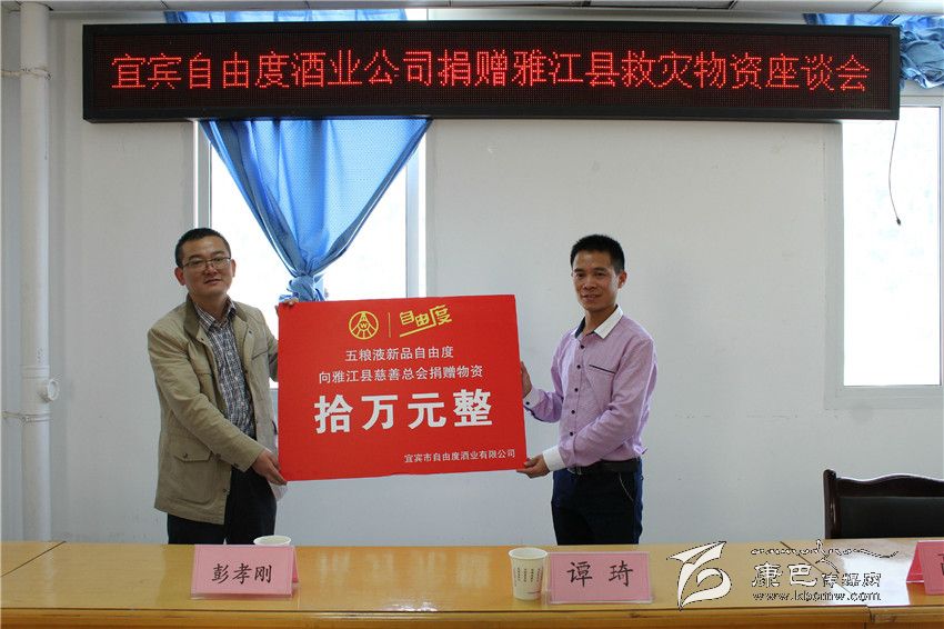 會上,彭孝剛代表宜賓自由度酒業(yè)有限公司向雅江縣慈善總會捐贈了包括救災帳篷、棉被等價值10萬元的物資。