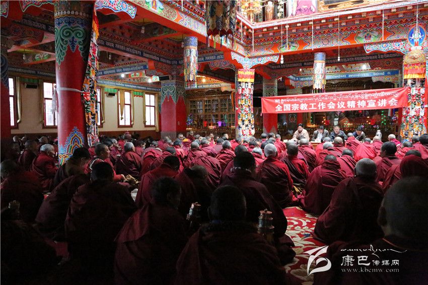 “中央和省委非常重視支持藏區(qū)經(jīng)濟社會發(fā)展和長治久安、非常關心關愛寺廟建設及其僧尼生活,州委更是在抓好發(fā)展、民生、穩(wěn)定‘三件大事’上下足了功夫,在惠寺惠僧上使足了干勁。‘十二五’以來,州上全力爭取落實了中央寺廟水、電、路等基礎設施建設資金1億多元,省級和州安排危房維修和專項資金1500余萬元, 2014年還專項為五明佛學院安排資金100萬元;各縣財政投入寺廟基礎設施資金共1.1億元,在267座寺廟開展了路、水、電、通訊、廣播電視‘五通’及危房建設。這些真金白銀的投入,帶來的是全州藏傳佛教寺廟基礎條件的大幅改善。面對寺廟和僧尼學習生活條件的日臻完善,難道我們不知道恩從何來嗎?‘十二五’以來,全州累計保障困難僧尼14969人,政府資助困難僧尼參加城鎮(zhèn)醫(yī)保、新農(nóng)合39014人,納入基本醫(yī)療保險38989人、養(yǎng)老保險12697人,完成52459名僧尼健康信息調(diào)查,3138名宗教場所負責人及成員享受工作補貼。這些看得見、摸得著的實惠,帶來的是廣大僧尼后顧之憂的迅即消除。面對這些無微不至的關愛,難道我們不知道恩向誰報嗎?今年是‘十三五’的開局之年,州委十屆八次全會確立了‘一個目標、兩個關鍵、三件大事、六大戰(zhàn)略’總體工作格局,提出了全面建設美麗生態(tài)和諧小康甘孜的宏偉目標,我們廣大僧尼也將與全州農(nóng)牧民群眾一起精準脫貧、致富奔康,住上好房子、過上好日子、養(yǎng)成好習慣、形成好風氣。面對來之不易的幸福生活和更加美好的發(fā)展前景,難道我們不知道在感恩中奮進、在奮進中感恩嗎?……”以小見大的宣講、以事說理的宣傳、以情感人的對話,使得宣講內(nèi)容都成了僧尼們愛聽的大白話、通俗話和貼心話。