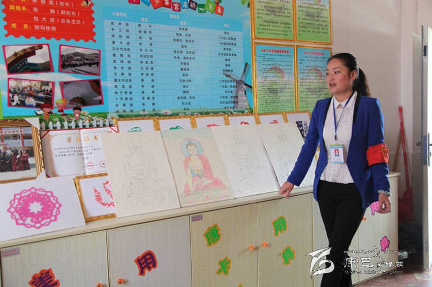 在少年宮孩子們參加格薩爾說(shuō)唱表演的照片和一件件作品前,負(fù)責(zé)少年宮教學(xué)的張靜老師告訴記者,本著弘揚(yáng)傳承傳統(tǒng)文化的宗旨,少年宮目前設(shè)有14個(gè)興趣小組,包括唐卡、說(shuō)唱、舞蹈、剪紙、藏文書法、手工、電子琴等,有30多名輔導(dǎo)老師利用業(yè)余時(shí)間和自己的特長(zhǎng)從事教學(xué)工作,另外,在色達(dá)縣委宣傳部的支持下,縣文化館還專門選派了兩名輔導(dǎo)員擔(dān)任說(shuō)唱組的教學(xué)工作。