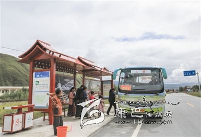 甘孜縣公交車開進鄉(xiāng)村。