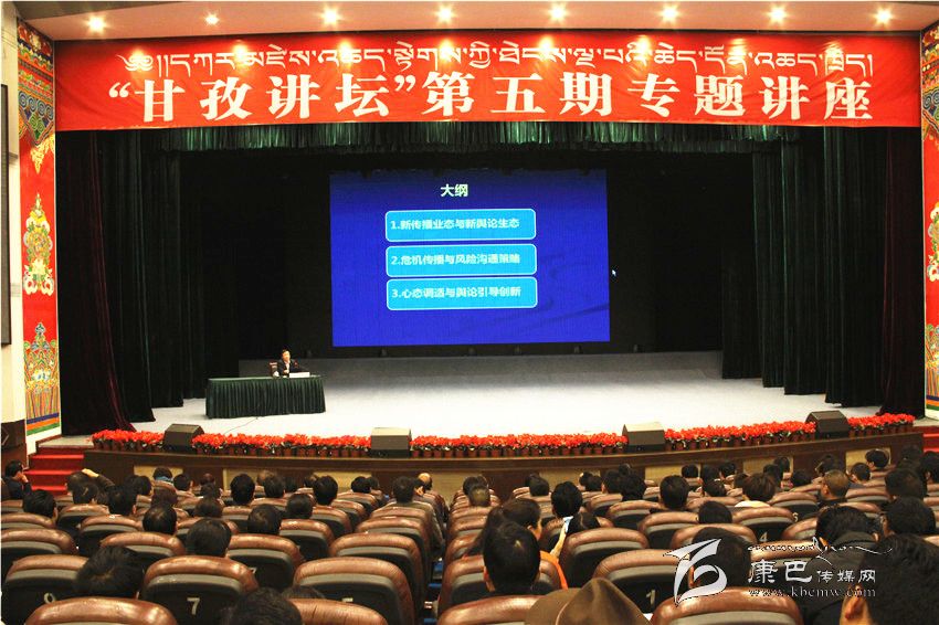 州委中心組成員,州委各部委,州級各部門黨組(黨委、黨工委)、省屬行政企事業(yè)單位黨委(黨組)、州屬企事業(yè)單位黨委(黨組)主要負(fù)責(zé)人及副縣級以上領(lǐng)導(dǎo)干部代表,不是州委中心組成員的四大家副秘書長,康定市委中心組成員和全州涉藏外宣培訓(xùn)班學(xué)員參加講座。