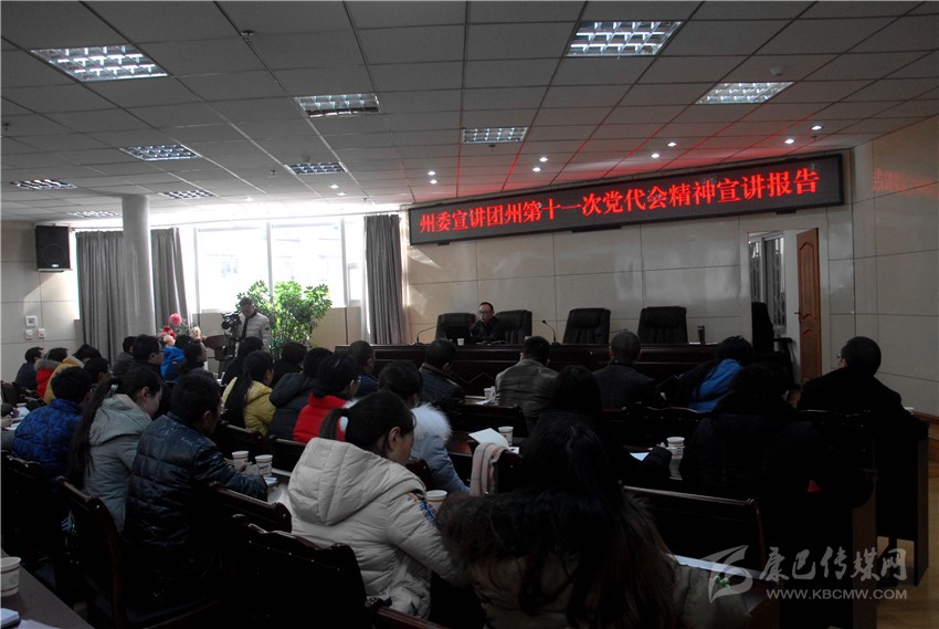 徐杰通過PPT的形式,圖文并茂的從全面了解州第十一次黨代會的主題、主要成果和起草過程,準確認識過去五年工作的成績經(jīng)驗,深刻把握州第十一次黨代會對當前形勢的分析、五年工作的指導思想和奮斗目標,精確把握和全面落實未來五年全州經(jīng)濟社會發(fā)展任務(wù),堅持全面從嚴治黨、不斷夯實黨的執(zhí)政根基五個方面,以詳實的數(shù)據(jù)、生動的畫面、平實的語言,提綱挈領(lǐng)、深入淺出地講解了州第十一次黨代會精神。