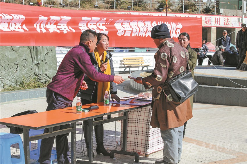 白玉縣集中開展了政策文化衛(wèi)生科技法律集中服務“五下鄉(xiāng)”活動,在嚴寒中為近2000名群眾送去了溫暖?;顒又校墒〖壭v員松吉尼瑪帶隊的政策宣講組,用通俗易懂的“土話”、民間諺語,為群眾講解了脫貧攻堅等政策。同時,新組建的縣藝術團送上了精彩的節(jié)目。由縣人民醫(yī)院、藏醫(yī)院等單位組成的“送衛(wèi)生”服務隊開展了現(xiàn)場義診活動,免費為群眾提供醫(yī)療服務。“送科技”和“送法律”服務隊進行了科普和法律服務,獲得到場群眾的由衷點贊。