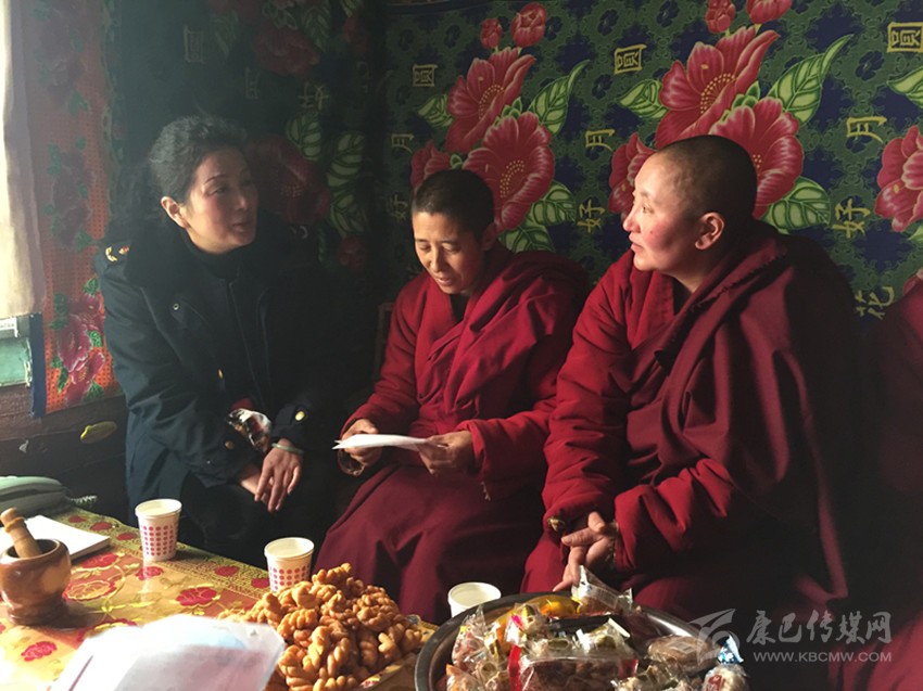 州工商局黨組書(shū)記、局長(zhǎng)丁淑娟進(jìn)寺廟講解新《消法》知識(shí)。