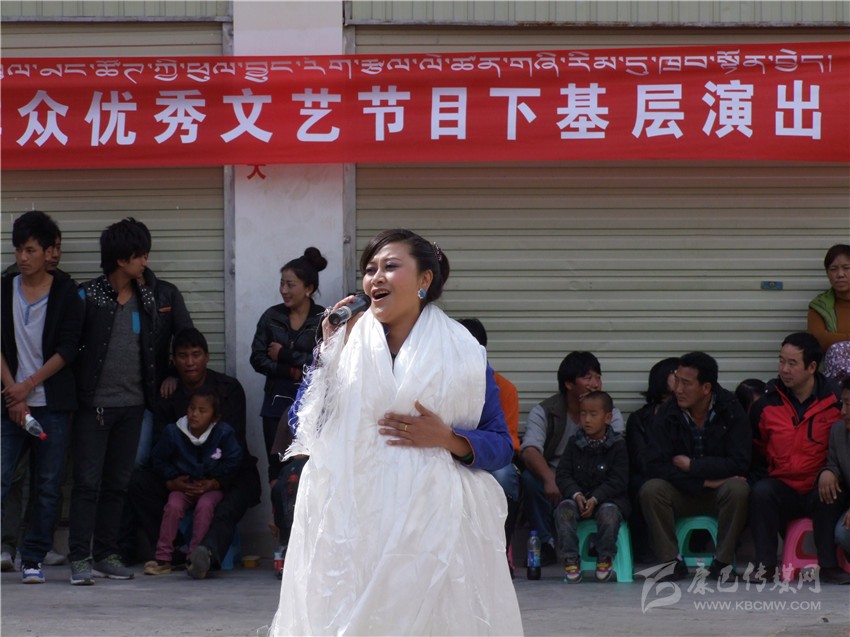 “2013年康巴兒女頌黨恩——甘孜州群眾優(yōu)秀文藝節(jié)目赴基層演出”活動相繼在稻城、得榮、鄉(xiāng)城、瀘定展開。3月的稻城,氣候依然寒冷,特別是稻城亞丁機場,這里海拔高,氣候惡劣,天氣變化莫測,對于格桑志瑪來講,到海拔4410米的地方演唱,是一個很大的挑戰(zhàn)。盡管如此,她希望通過自己熱情的演唱,能給建設者送去一絲溫暖。