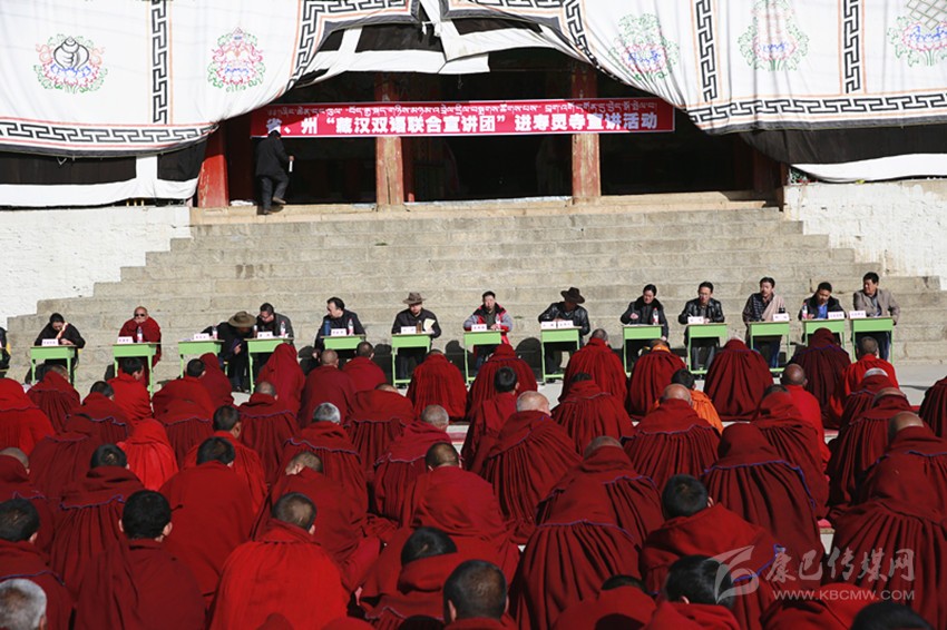 省、州藏漢雙語聯(lián)合宣傳團進寺廟開展法治宣講。 本報資料圖
