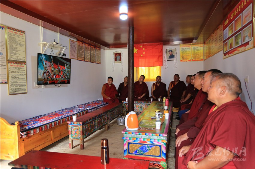 丹巴縣扎西仁青嶺寺僧侶集中收看慶祝大會直播。