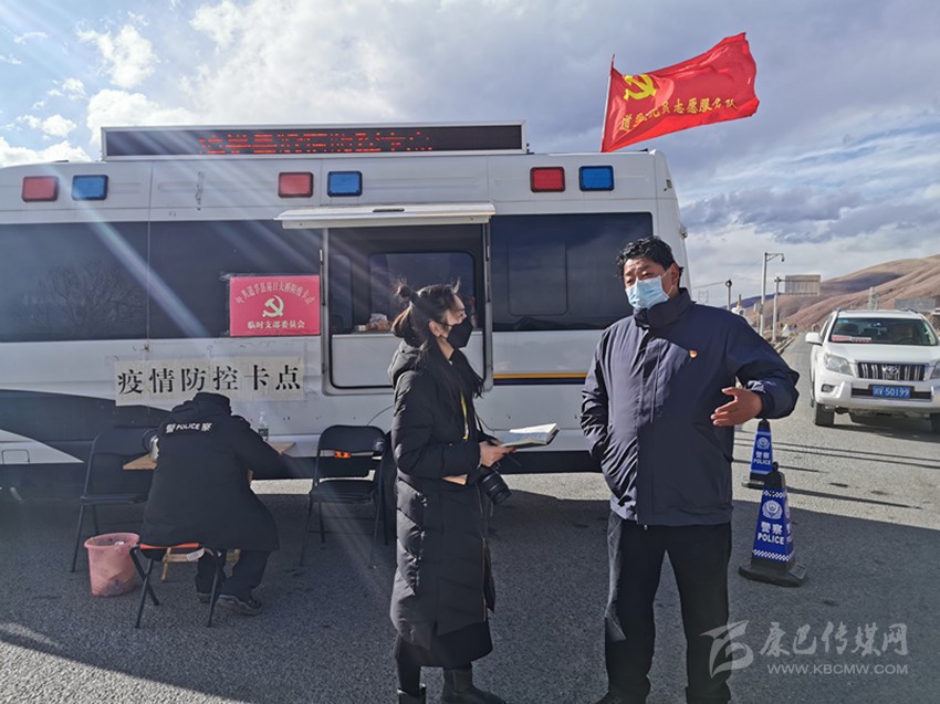 張亞賢在道孚縣疫情防控卡點采訪。