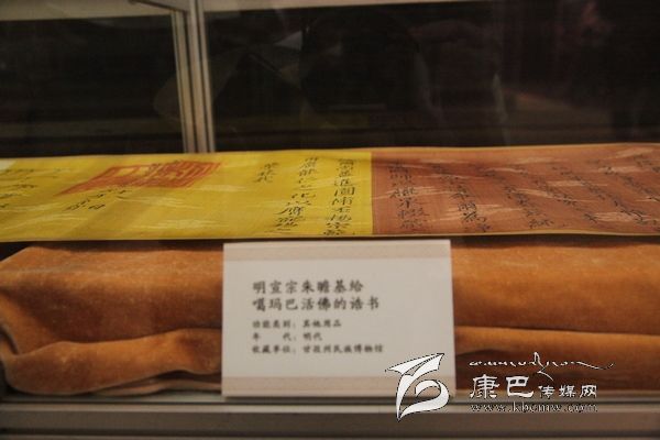 據(jù)介紹,明成祖永樂(lè)十一年封誥為國(guó)家一級(jí)文物,系明永樂(lè)帝成祖朱棣于明永樂(lè)十一年(1413)敕封噶瑪噶舉楚布寺第二世司徒活佛曲吉降村為“灌頂圓通妙濟(jì)國(guó)師”時(shí)頒賜。那是一份來(lái)自600年前的古老信息,也是一份見(jiàn)證中國(guó)千百年來(lái)民族團(tuán)結(jié)、祖國(guó)統(tǒng)一的誥文。誥文清楚的記述了“永樂(lè)盛世”中甘孜人民在華夏大家庭中的和諧與共,也把宣德年間明朝文化,經(jīng)濟(jì)繁榮階段中康巴文化的不可或缺緊密的聯(lián)系在一起。