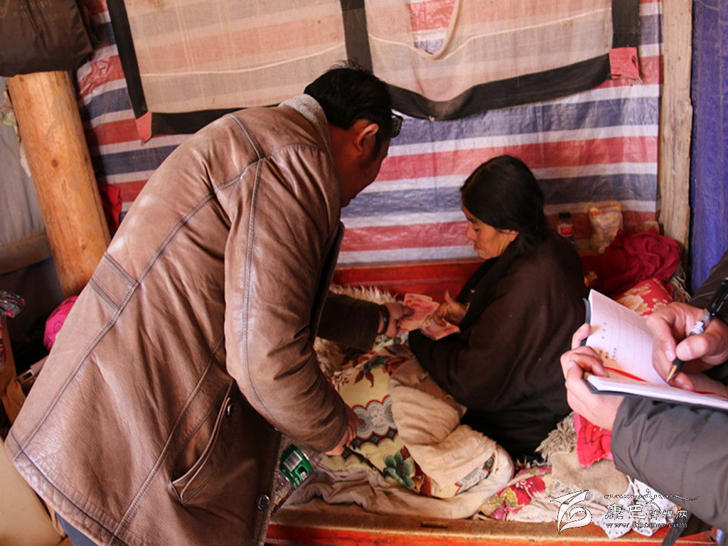 圖為孫曉牧將捐款送到益西則瑪手中。(唐書(shū)偉 陳雪峰 攝影報(bào)道)