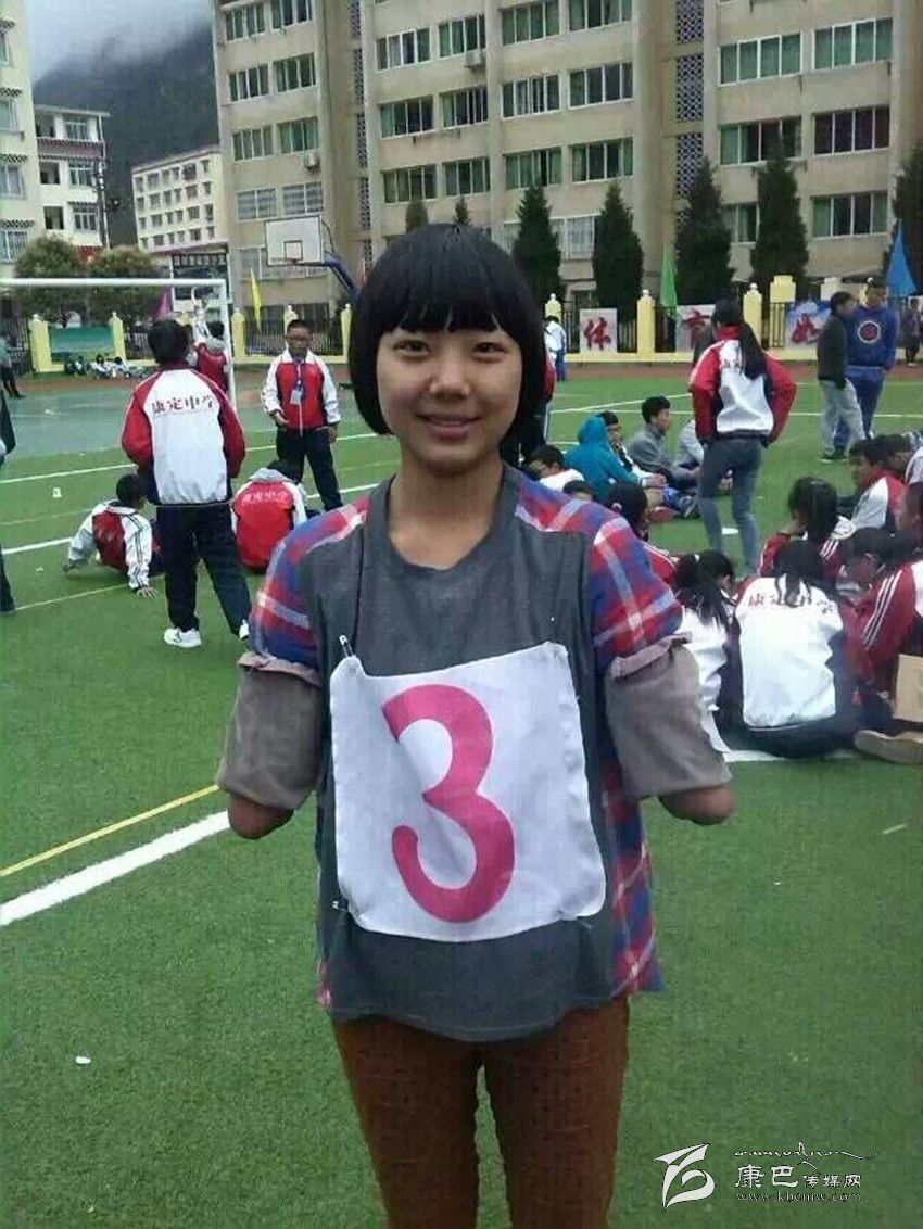 在康定中學(xué)校園里,你會邂逅這樣一位女孩:臉上永遠(yuǎn)燦爛著陽光般的微笑,雙眼永遠(yuǎn)閃爍著自信樂觀的光芒。教室里,她聚精會神地聽課;圖書館里,她專心致志地讀書;操場上,她身輕如燕地奔跑;寢室里,她開心爽朗地和同學(xué)交流。可你仔細(xì)一看,她竟然沒有雙臂,就像折翼的天使。她就是該校高2016屆8班學(xué)生,羌族女孩許方燕。行走在高原的風(fēng)中,她是一幀讓每一個(gè)人內(nèi)心泛起感動(dòng)漣漪的美麗風(fēng)景……