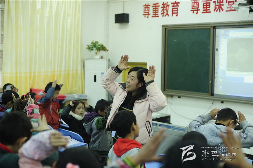 “同學(xué)們,我們?cè)賮?lái)練習(xí)一下好嗎?”孩子們齊刷刷地隨著音樂(lè)又唱又跳,《鵝》、《春眠》、《小雨沙沙地下》三首歌曲之后孩子們興致高漲、喜笑顏開(kāi),裴老師一個(gè)暫停手勢(shì),教室立刻安靜下來(lái),緊接著就是密集的移動(dòng)桌椅的聲音,30多張書(shū)桌很快又被排放得整整齊齊,整個(gè)過(guò)程老師沒(méi)說(shuō)一句話,這群六七歲的孩子卻仿佛久經(jīng)訓(xùn)練的士兵反應(yīng)迅速而有序。