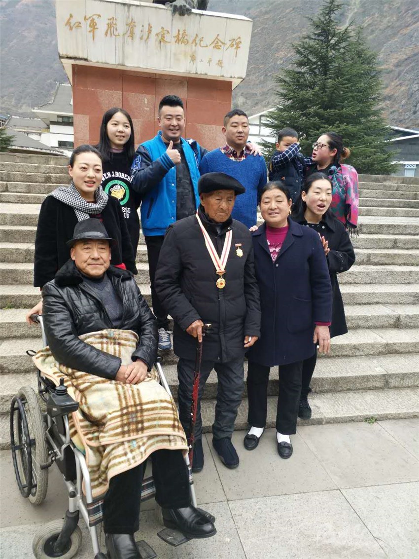 王瑞生專門帶領(lǐng)28名兒孫們前往瀘定橋紀(jì)念碑前合影,向他們講述紅軍長征這段歷史。他說得最多的一句話就是,“只有共產(chǎn)黨才能給我們帶來幸福生活,要不忘黨恩,回報(bào)社會。”老人特殊的紅軍情結(jié)感染著兒孫們,老人傳承著紅軍精神,不忘初心,永遠(yuǎn)向前?!袄先松砩象w現(xiàn)的不向困難低頭,堅(jiān)強(qiáng)不屈的精神,正是當(dāng)前開展精準(zhǔn)扶貧工作所需要倡導(dǎo)的精神,只要我們發(fā)揚(yáng)紅軍精神,就一定能夠過上好日子。”老人的孫子告訴記者,在老人的激勵下,現(xiàn)在家人昂揚(yáng)向上,幸福美滿。