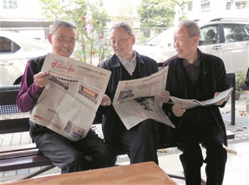 圖為雅安干休所退休干部正在閱讀《甘孜日報》。