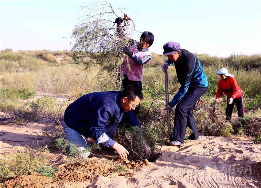 張應(yīng)龍的造林面積目前已超過38萬畝。而已近花甲之年的張應(yīng)龍并不滿足于沙漠治理僅僅產(chǎn)生生態(tài)效益,他希望能從沙漠里找到一條“生態(tài)致富路”。經(jīng)過多年的實踐,他找到一種叫“長柄扁桃”的灌木兼?zhèn)渖鷳B(tài)與經(jīng)濟(jì)特性。