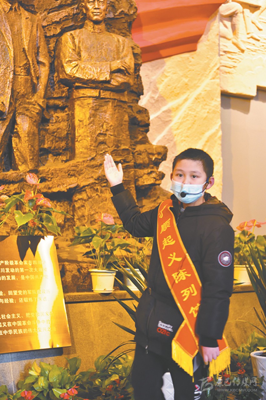 “小小講解員”瞿小峰正在給游客講解紅色故事。 本版圖片均由四川日?qǐng)?bào)記者 楊樹 攝