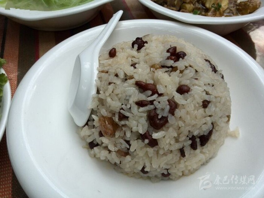 2、首先把人參果煮熟,然后把米飯舀進碗里,飯上面舀上煮熟的人參果,撒上白糖,最后淋上一點滾燙的酥油汁就成了。