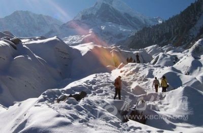 海螺溝冰川舌現(xiàn)長6公里,寬0.4-0.7公里,推算最厚100-130米,冰川大約形成于1600年以前。在冰川的運(yùn)動中形成晶瑩如翡翠、水晶,觀賞價(jià)值極高的冰川弧拱、卷曲、單斜、向斜構(gòu)造成的冰川層紋單條裂縫長達(dá)100余米,深5-10米,寬0.5-2米的冰川斷裂帶,蔚為壯觀。在冰川的消融過程中形成了千姿百態(tài)的冰面湖、冰桌、冰洞與冰橋、冰面河,令游人贊不絕口。另外,源于主峰東南側(cè)海拔5600米以上的大雪山脈分水嶺,冰川的最低點(diǎn)海拔3000-3700米,可以供登山愛好者攀登。
